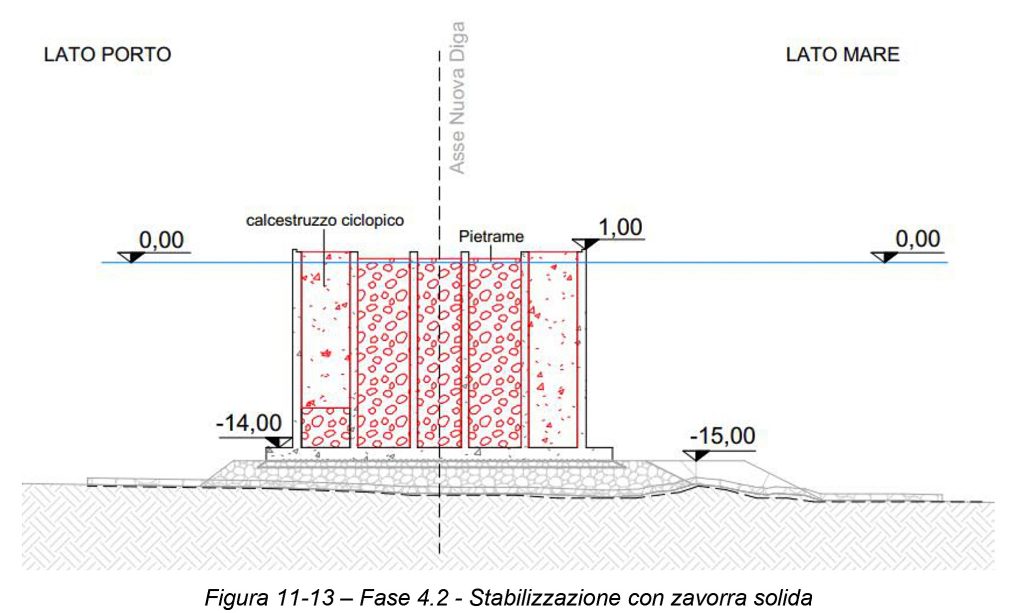 Gli elaborati grafici sono stati estrapolati dalle relazioni allegate al progetto dell’AdSP “Prolungamento e rafforzamento della diga foranea Duca d’Aosta”.